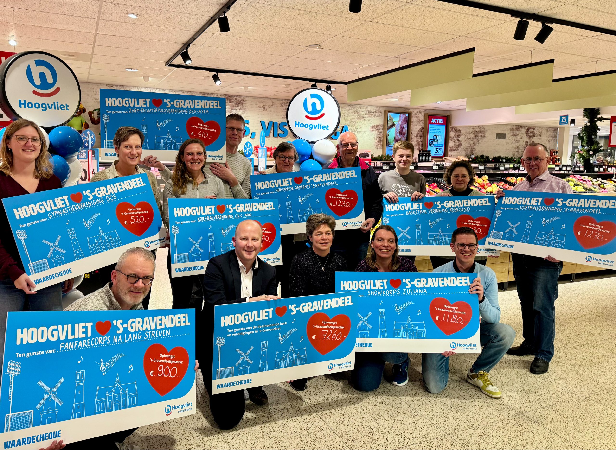 Donderdag 11 september 2025 kreeg ons dorp een nieuwe supermarkt, de Hoogvliet opende een nieuw filiaal in 's-Gravendeel. Om dit te vieren รฉn als nieuwe buur bij te dragen aan de gemeenschap, startten ze de lokale spaarcampagne: โ๐-๐๐ฟ๐ฎ๐๐ฒ๐ป๐ฑ๐ฒ๐ฒ๐น๐๐ท๐ฒ๐. Hiermee spaarden inwoners via de dagelijkse boodschappen direct voor een financiรซle bijdrage aan een kerk of vereniging in โs-Gravendeel. Uiteraard deden wij hier ook aan mee. De spaaractie liep van 29 oktober t/m 13 december 2025. Vrijdag 19 december 2025 was de prijsuitreiking in de winkel. De spaaractie heeft in totaal 7.260,00 euro opgeleverd en dat is verdeeld onder alle deelnemers. Voor onze vereniging lag er een mooie cheque van 410,00 euro gereed, wat een mooi bedrag! Dank aan iedereen die de 's-Gravendeeltjes heeft gespaard voor ons.